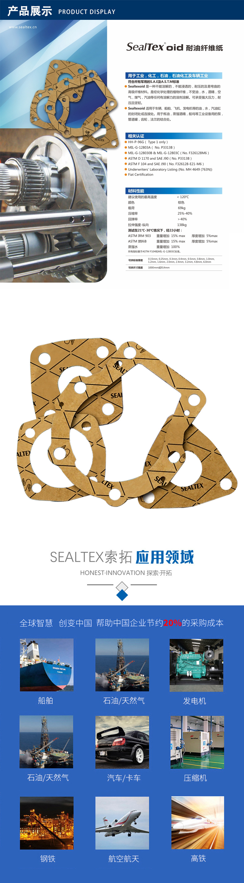 上海索拓密封材料有限公司長(zhǎng)期致力于適用于各行業(yè)的密封墊、無(wú)石棉墊片、環(huán)保墊片和耐高溫隔熱產(chǎn)品的生產(chǎn)、加工及銷(xiāo)售