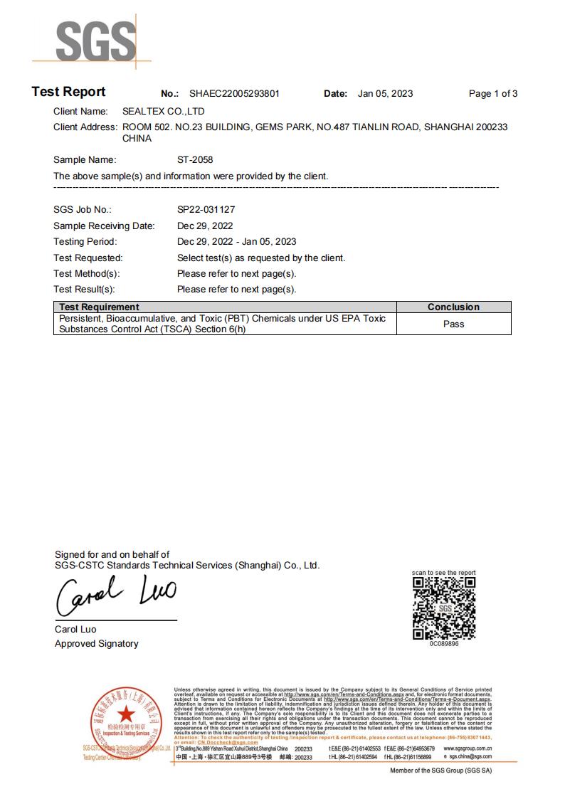 SealTex索拓 ST-2058通過(guò)RoHS和TSCA測(cè)試